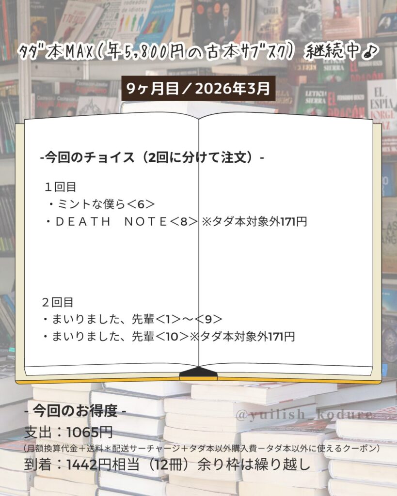 到着:2930円相当(25冊)前回までの余り枠も消費