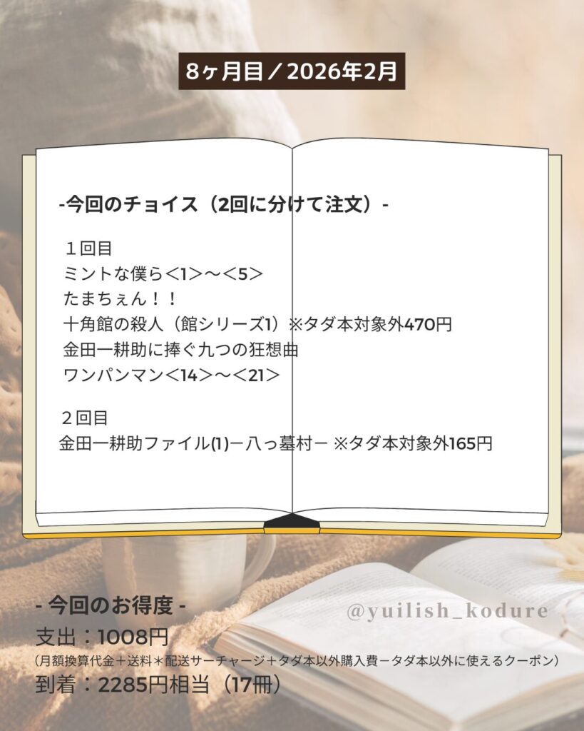 到着:1637円相当(11冊)かつ4冊分の枠を来月へ繰り越し