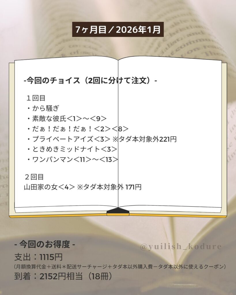 到着:1332円相当(18冊)かつ余り枠を来月へ